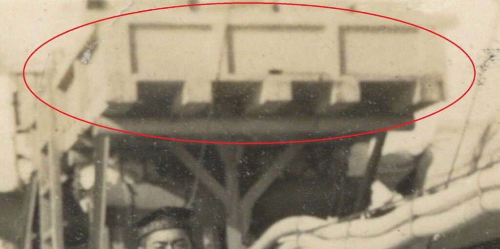 写真2を見ると、機銃座の手すり部分にキャンバスの紐が見えていることから、防弾板はキャンバスの内側に装着していると考えられます。そのため、写真3では第2煙突後方の機銃座に防弾板を装着していたかが分かりませんが、一番砲後ろの機銃座に防弾板を装着していることから第2煙突後方の機銃座についても防弾板を装着していた可能性が高いと考えています。